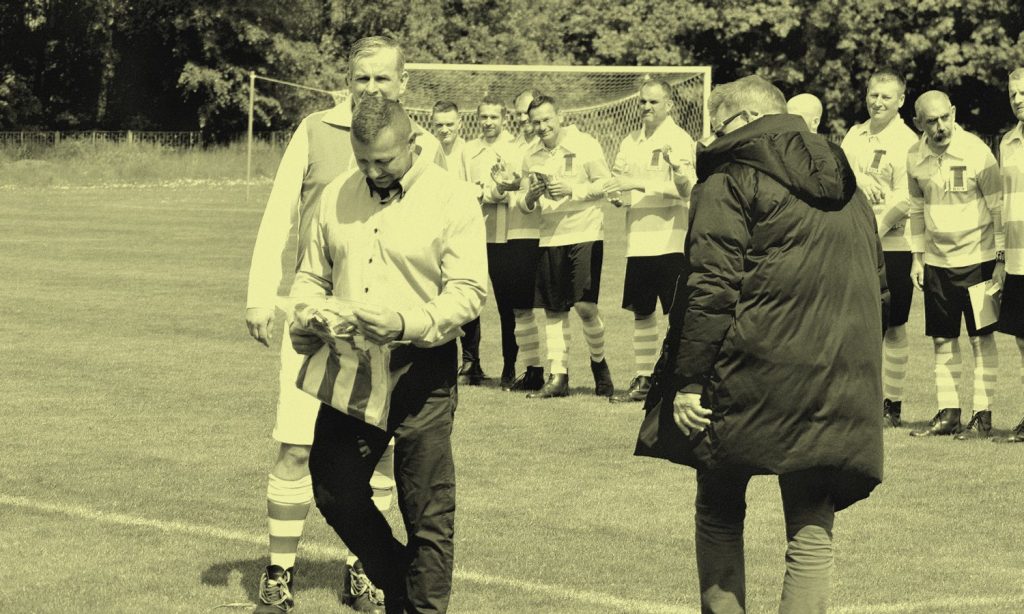 Przed spotkaniem mięliśmy kilka drobnych uroczystości. Prezes Lechii Dzierżoniów Jacek Falikowski odebrał z rąk działaczy Lechji Lwów wylicytowaną przez siebie koszulkę meczową, a Pawłowi Sibikowi z okazji swoich 50 urodzin wręczono drobne upominki.